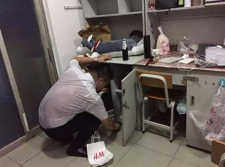 班主任在检查整理学生宿舍